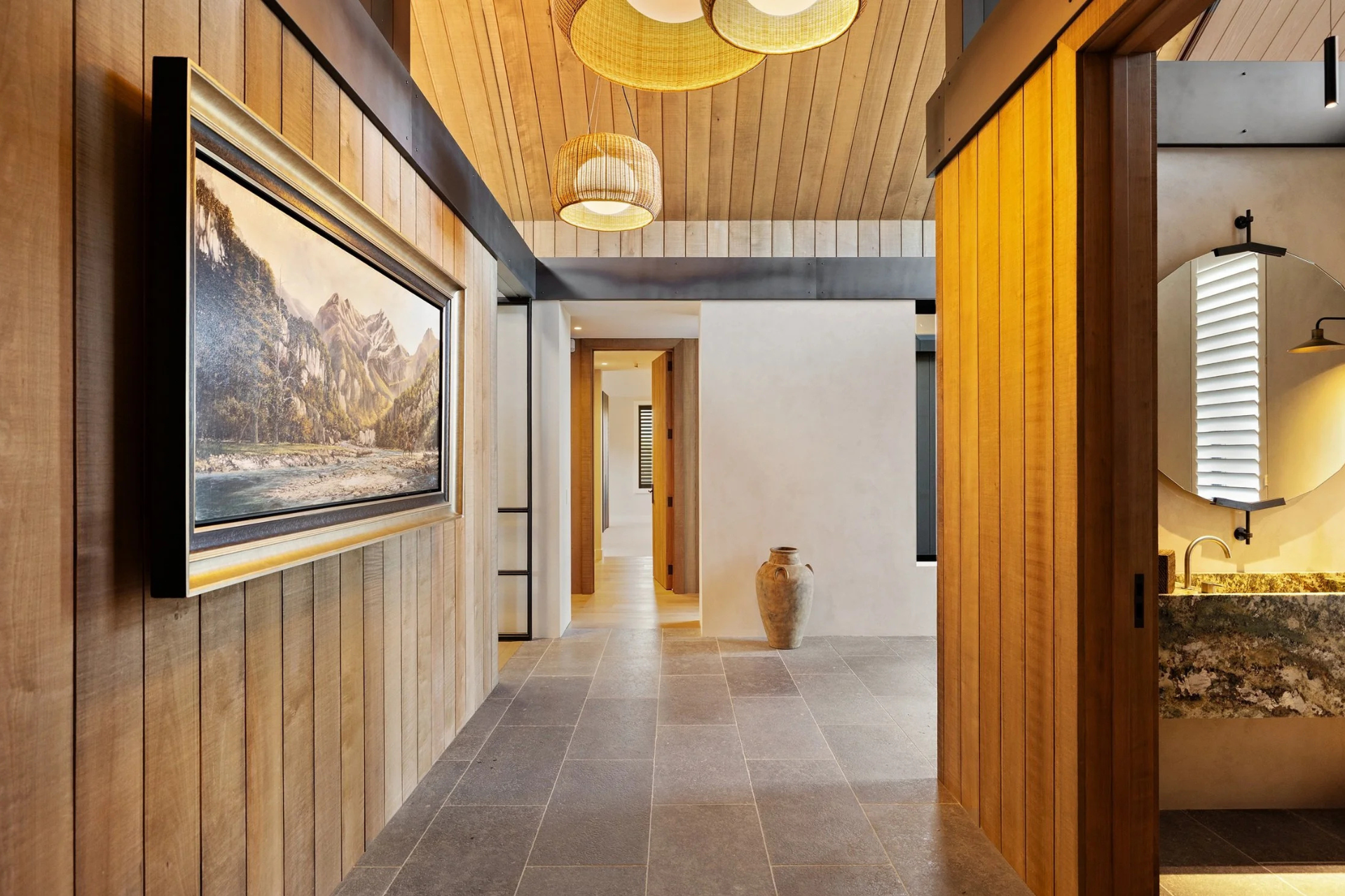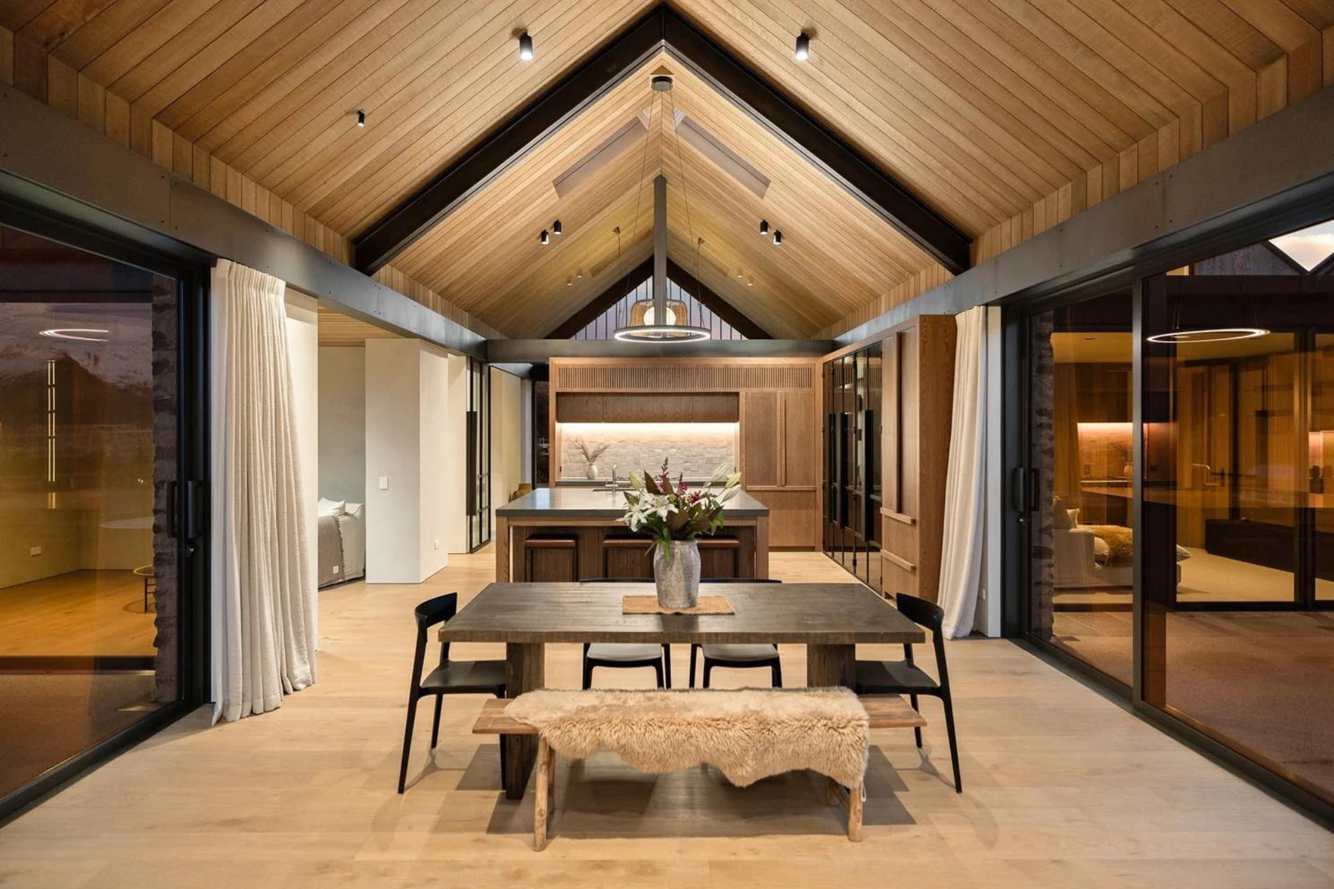 Te Mira’s exterior is a celebration of natural materials including Corten steel, schist, cedar, oak and southern beech, while handcrafted bespoke joinery and premium finishes are standout features inside.