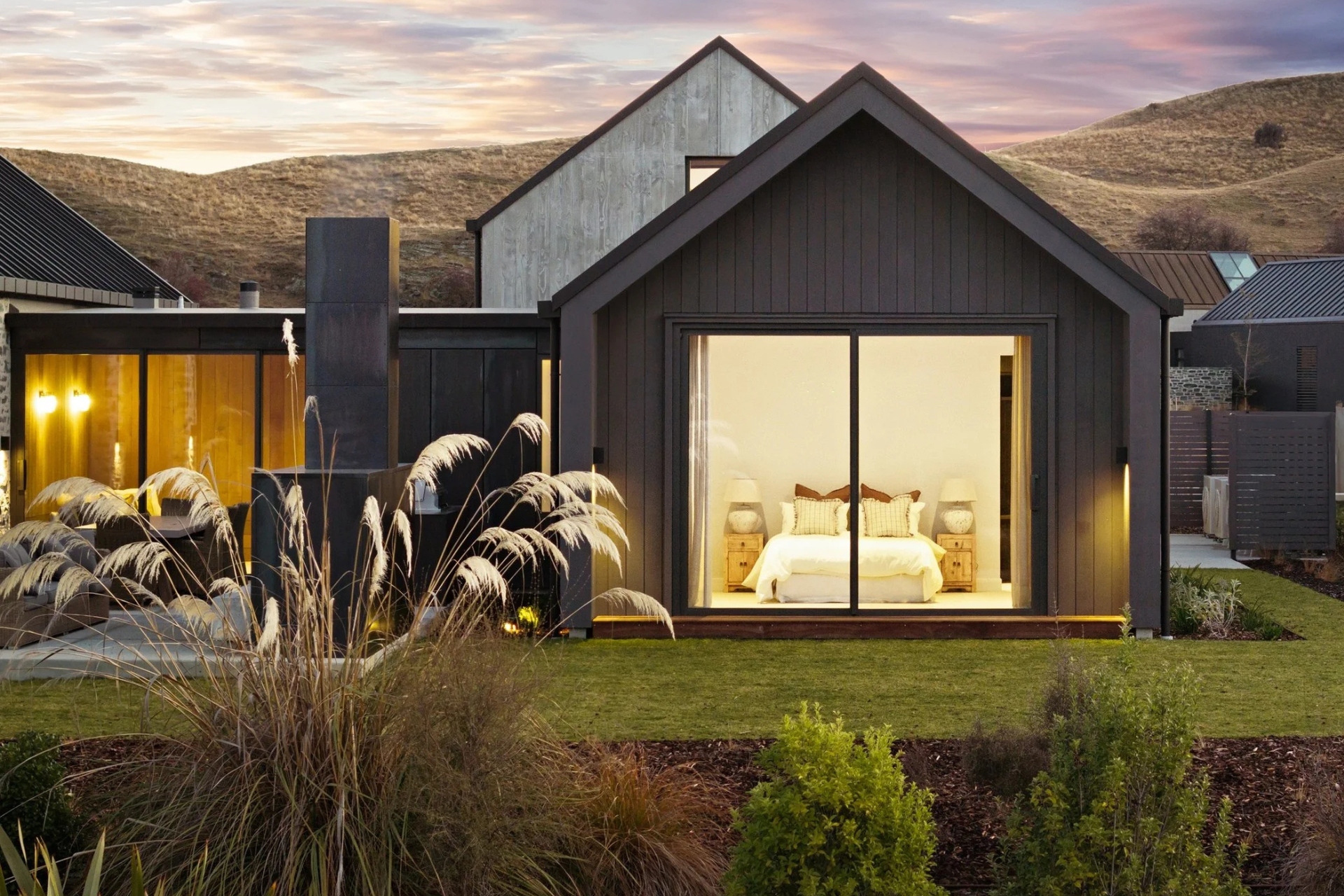 On sun-drenched site at Queenstown’s Millbrook Resort, Te Mira stands out from surrounding properties